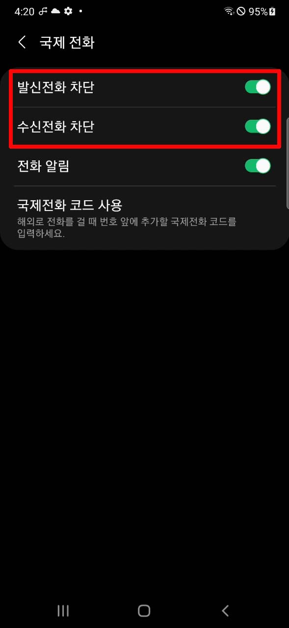 갤럭시 국제전화 차단