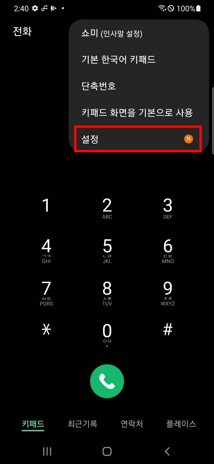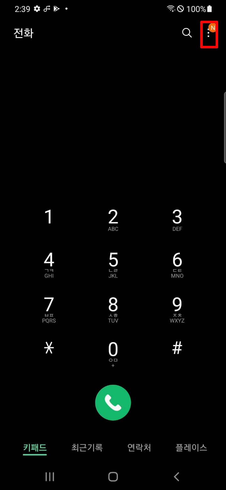 전화 앱에 들어가셔서 점3개를 눌러주세요.