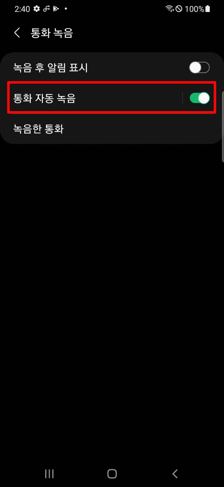 통화 자동 녹음을 활성화시켜주세요.