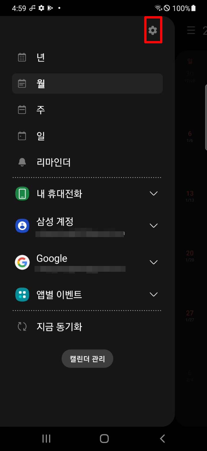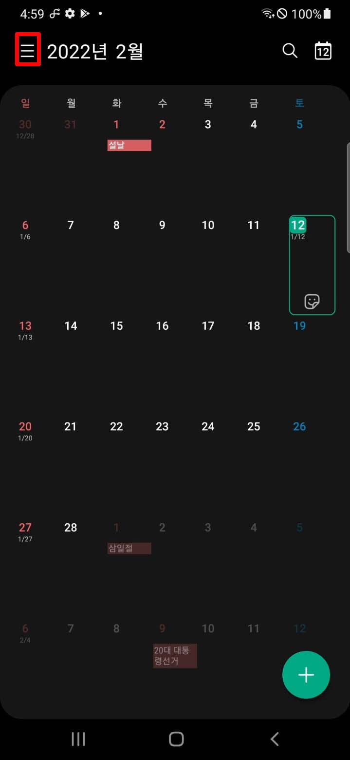 캘린더에 들어가셔서 상단에 있는 점3개를 눌러주세요.