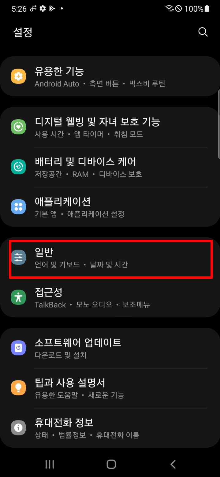 설정에 들어가셔서 하단에 있는 일반에 들어가 주세요.