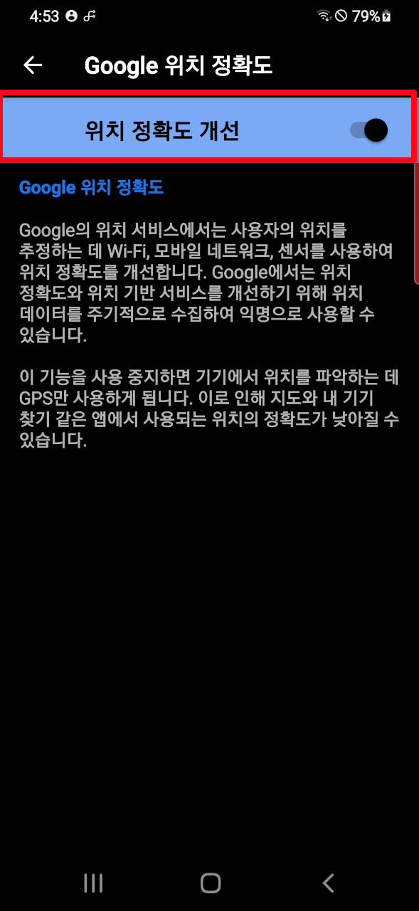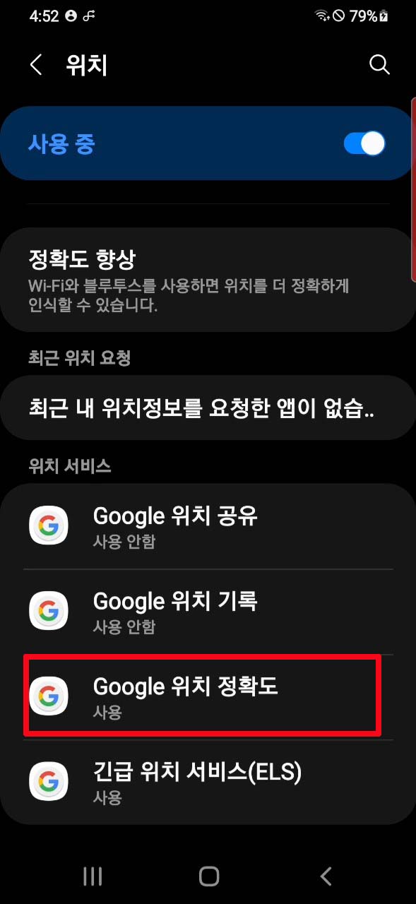 스마트폰에서 위치를 사용하는 경우는 내비게이션이나 지도 등을 사용할 때 그리고 보험회사에서 서비스를 제공하기 위해서 내 위치를 찾을 때 많이 사용하는데 이 위치 기능이 활성화되어있을 때도 내비게이션이나 지도가 제대로 위치를 알려주지 못할 때가 있습니다 그럴 때 간단하게 위치정확도를 올리수 있는 설정이 있으니까 그 방법을 알려드리겠습니다.