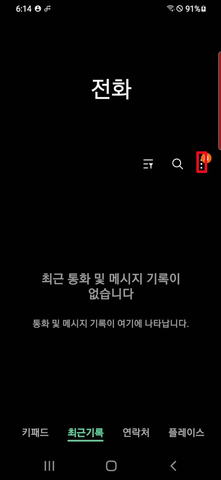전화에 들어가셔서 위쪽에는 점 3개를 누러 주세요.