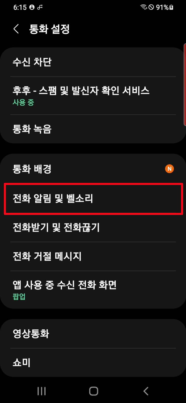 전화 확인 및 벨소리에 들어가 주시고요.