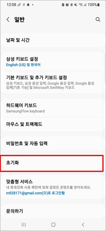 다시 설정에 들어가셔서 일반을 찾아 들어가 주세요.