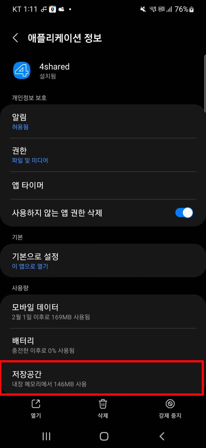 설정에 들어가셔서 애플리케이션에 들어가 주세요.