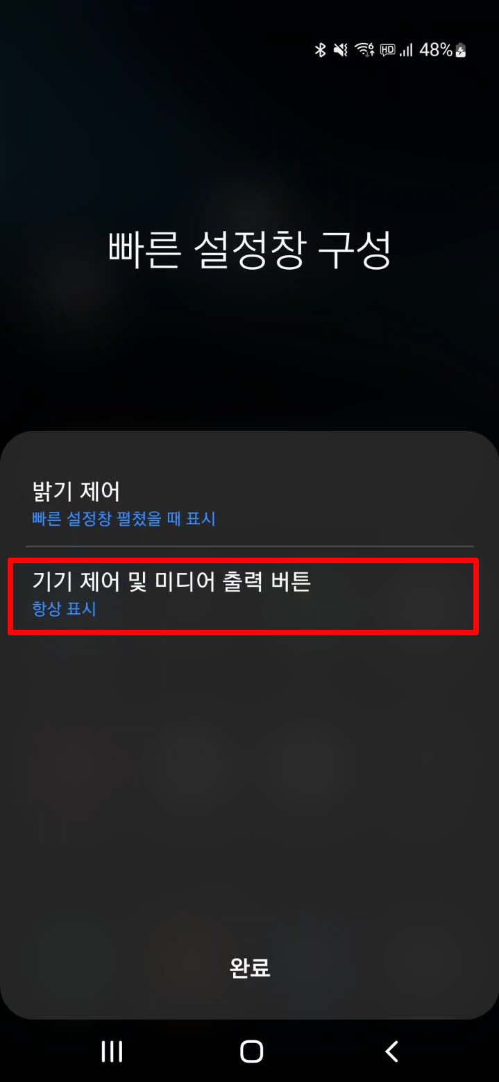 갤럭시 S22 기기 제어 및 미디어 출력 버튼 끄기